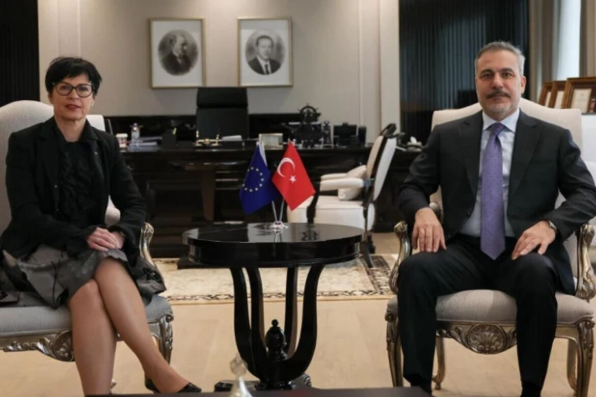 Dışişleri Bakanı Hakan Fidan, Avrupa Birliği (AB) Komisyonunun Genişlemeden Sorumlu Üyesi Marta Kos ile bir araya geldi. Bakanlığın, Nsosyal hesabından yapılan paylaşımda, Fidan’ın Kos ile Ankara’da görüştüğü belirtildi.